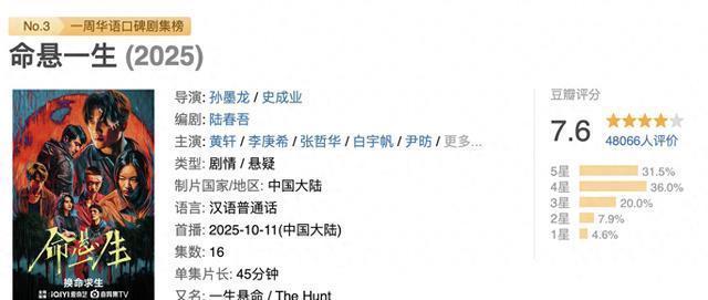 《命悬一生》完结,豆瓣评分7.6,在今年的华语悬疑剧里可以排前三。